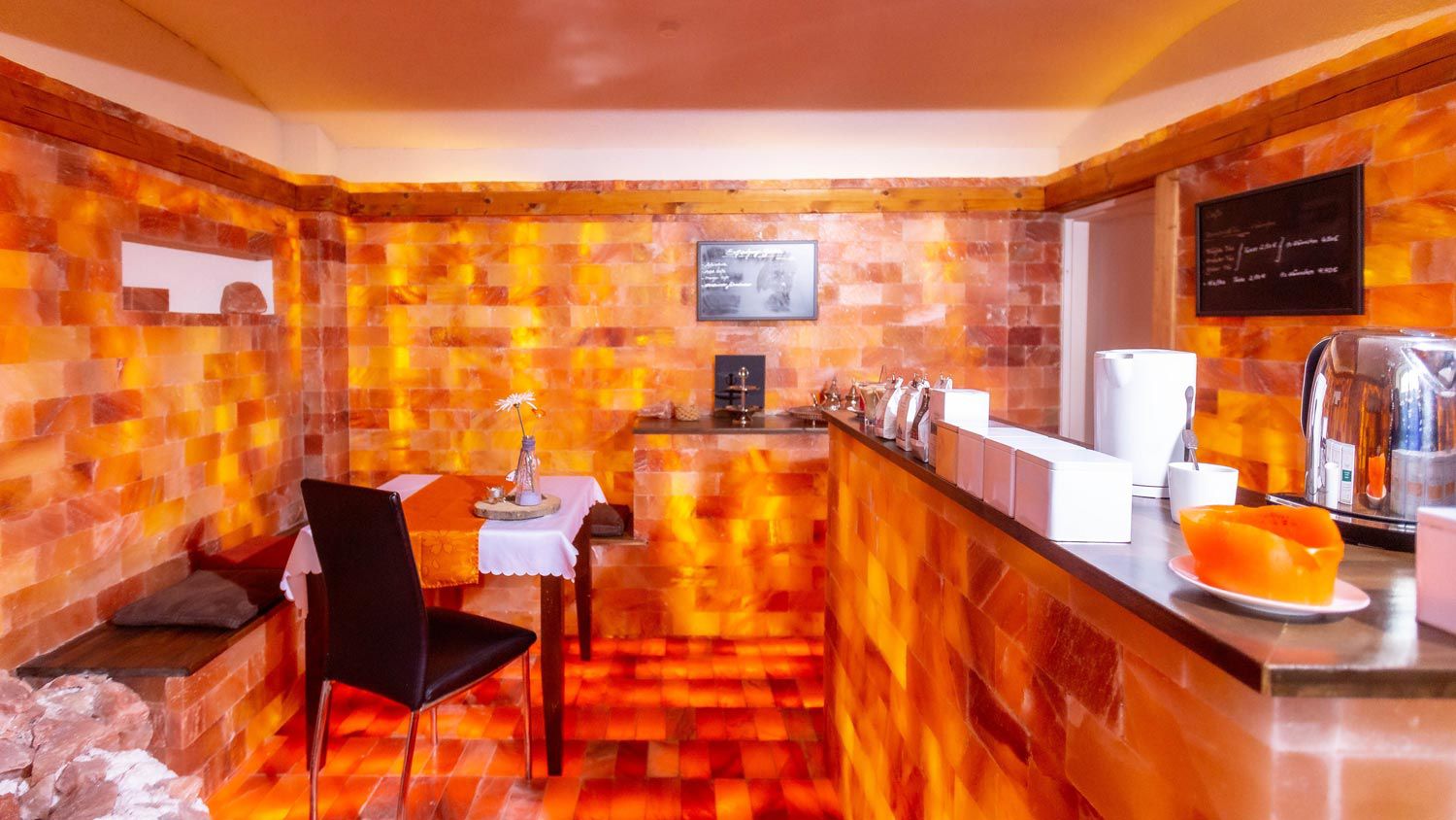 In unserem Salzbrunnen Cafè können Sie zum Abschluss ihrer Behandlung gerne Getränke serviert bekommen. Auf Vorbestellung für Gruppen können Sie auch ein Frühstüksbuffet für Anlässe w.z.B. Geburtstag, Junggesellenabschied und andere. Hier können Sie auch unseren verschiedenen Salzprodukte aus der ganzen Welt die wir zum Verkauf anbieten in Ruhe verkosten. Kommen Sie auf uns zu, gerne beraten wir Sie.