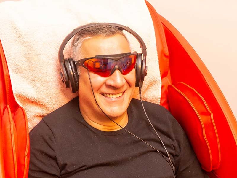 Im Anschluss eine 40“ tige Entspannungsreise in den Massagesessel mit dem Tiefenentspannungssystem von Brain Light-