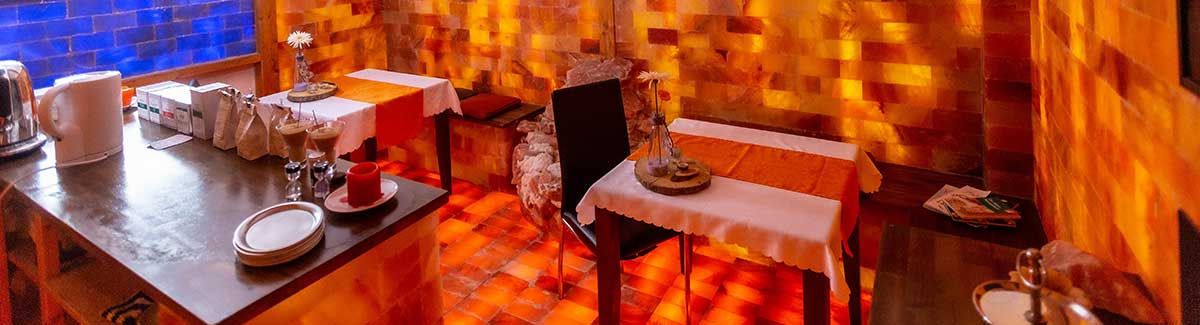 Ein Glas Sekt zur Begrüßung eine gemischte frische Obst Etagere eine Sole Fußbad bestehend aus Molke Zusatz und ätherischen Ölen eine Tiefenentspannungsreise mit Brain light in den Massagesesseleine Wärmekompresse fürs Gesicht eine Luxury Lift Tuchmaske fürs Gesicht zwei soft Touch Handschuhe mit verschiedenen Ölen, das wird das Programm der Erholungsgrotte gestartet dann wird Ihnen ein Tee oder Kaffee mit einer orientalischen Salzpralinenkunst Gebäck in unserem Salzbrunnen Café kredenzt.