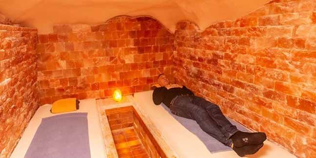 Ein Sole Fußbad bestehend aus Molke Zusatz oder ätherischen Ölen eine 20“ tige Entspannungsreise in den Brain light Massagesessel weiter in der Entspannungszeit geht’s in unserer Lichtchristallgrotte mit einer 10% tigen Sole auf den wohl temperierten Wasserbetten zum Abschluss können Sie einen Tee ihrer Wahl oder Kaffee in unserem Salzbrunnen Café genießen