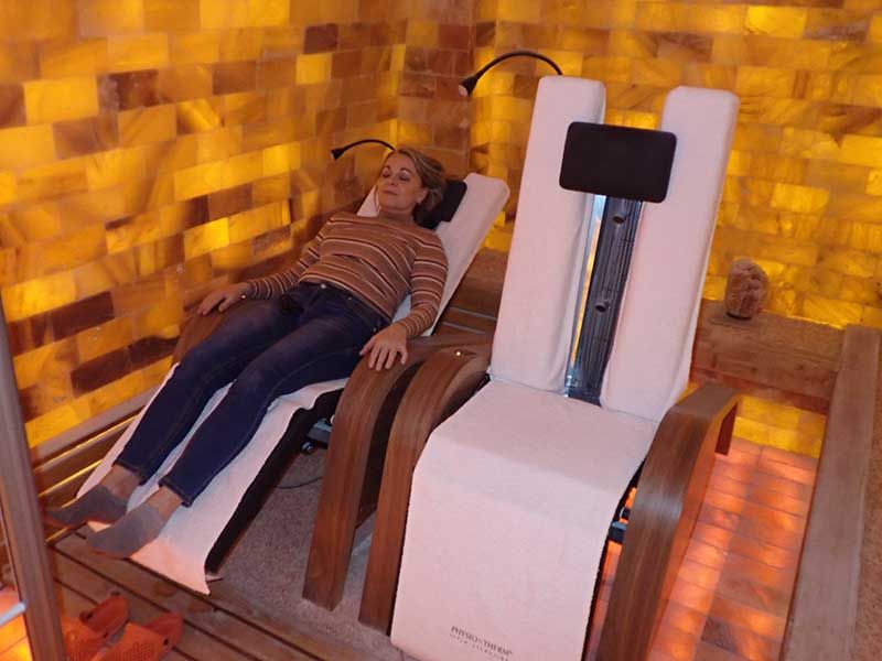 Dann zur Entspannung in unserer Erholungsgrotte Grotte 45“, wo Sie in die Infrarot Wärmesessel ihren Körper vollends regenerieren können